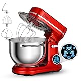 【2026新モデル】スタンドミキサー 5L大容量 卓上型ミキサー 低騒音 3種類アタッチメント付き 11段階スピード調節 コンパクト 家庭用/業務用 OLEDタッチ機能付きメニュー タイマー機能 DC 混ぜる/こねる/泡立てる 一台多役 stand mixer (赤)